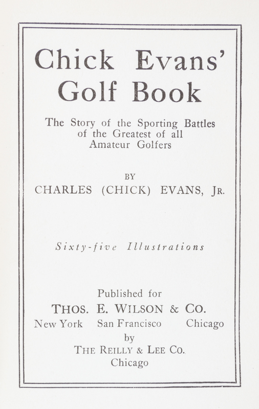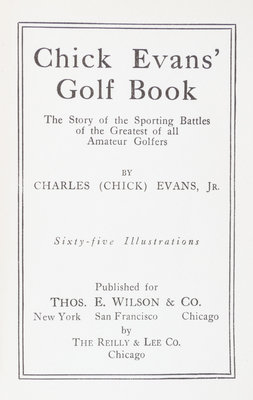 Chick Evans' Golf Book. New York: Thos. E. Wilson, 1921.8vo, publisher's cloth. First edition, with 65 illustrations. Signed and inscribed by Chick Evans on the dedication page "To Edwin T. Maynard: with best of best wishes from His close friend Chick Evans." Minor shelfwear, including a tiny tear to the top of the spine, and minor flecking to the top of the closed page edges.