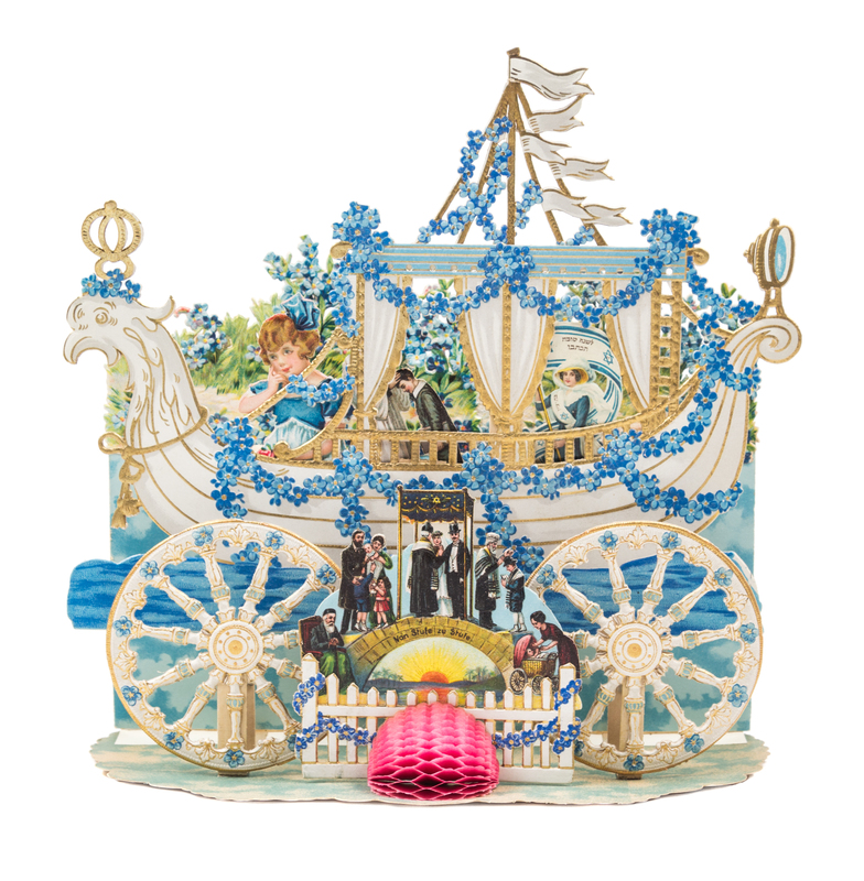 A Jewish New Year pop-up card with gilt and hand-painted detail, c. 1910.