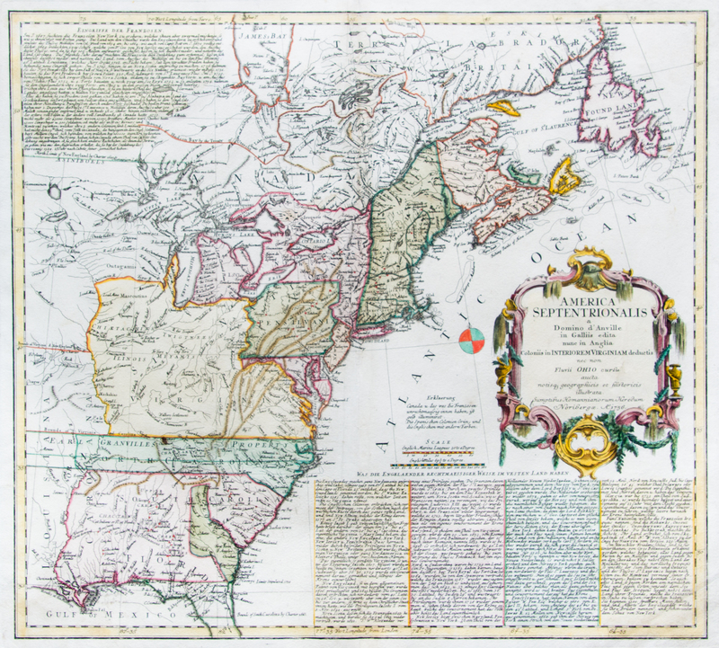 America Septentrionalis. Nuremberg, c. 1777. Engraved map of the colonial United States, with hand-coloring.
