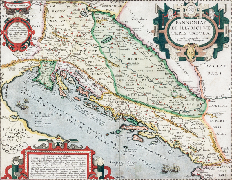 Pannoniae, et Illyrici veteris Tabula. Antwerp, c. 1590. Engraved map of the Dalmatian coast, hand-colored.