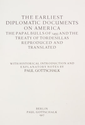 The Earliest Diplomatic Documents on America. Berlin: by the author, 1927.Folio, publisher's quarter vellum. One of 150 copies.