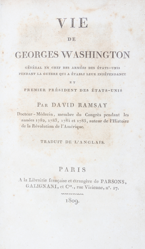 Vie de Georges Washington, General en chef desarmees des Etats Unis. Paris, 1809.8vo, calf, morocco slipcase. From the library of Napoleon Bonaparte with library stamp to f.f.e.p.
