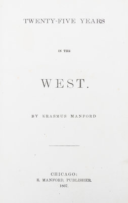 Twenty-Five Years in the West. Chicago: E. Manford Publishers, 1867.8vo, original publisher's cloth. Howes M250. Light wear to boards; minor dampstaining and rippling to pages.