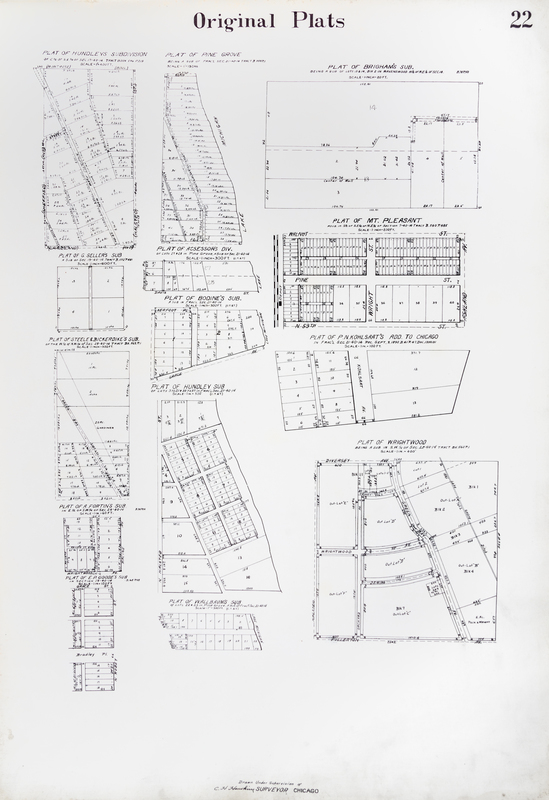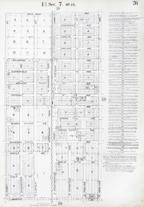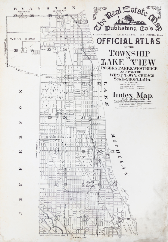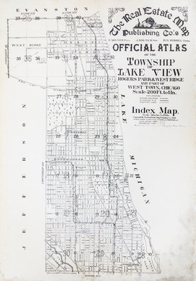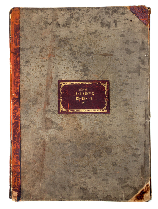A real estate atlas of Lake View and Rogers Park. Chicago, 1915. Large folio, bound by Fred Mees Bindery in 3/4 calf over cloth, gilt-lettered label to upper board. With 40 large lithographic real estate maps, printed on both sides.