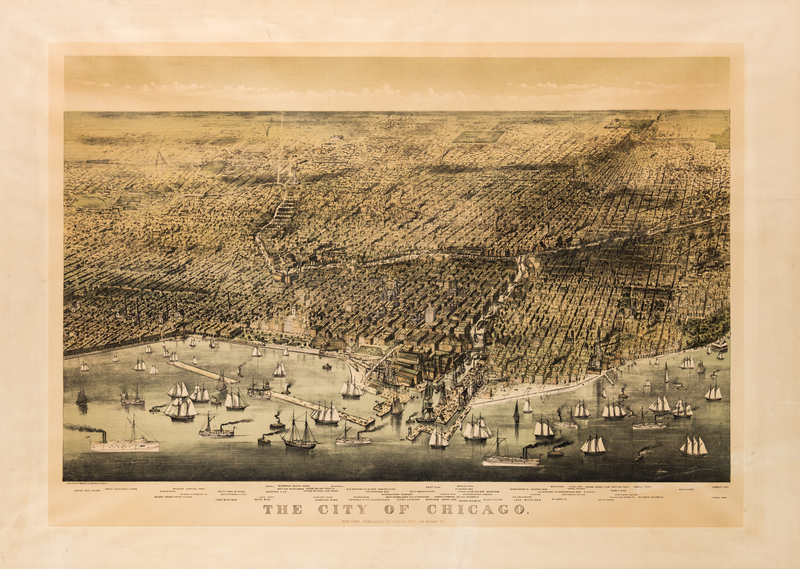 The City of Chicago. New York, 1892. Reproduction lithograph with hand-coloring. Laid to board. Framed and matted.