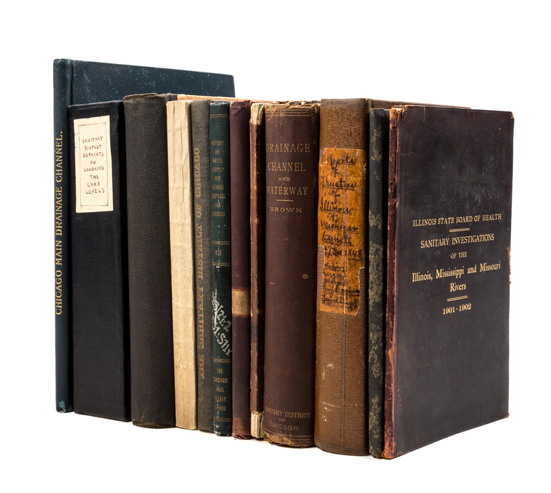 A group of 17 government publications pertaining to Chicago sanitation, with many maps and diagrams. Chicago, 1889-1931.