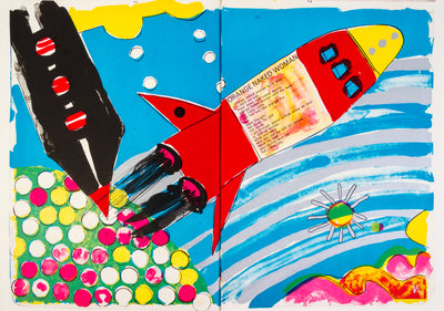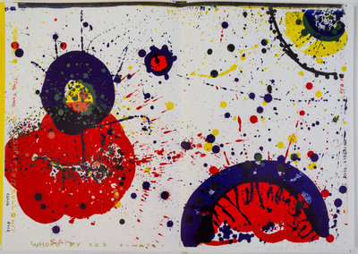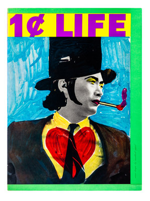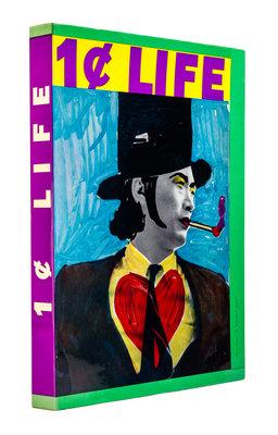 One Cent Life. Edited by Sam Francis. Bern: E.W. Kornfeld, 1964.Folio, loose as issued in original multi-colored cloth folder, glossy pictorial dust jacket and originalcloth-backed yellow slipcase. Limited edition, number 1,960 of 2,000 copies of this important Pop Art collaboration by 28 artists, including Andy Warhol, Sam Francis, Robert Rauschenberg, Roy Lichtenstein, Claes Oldenburg, Jim Dine, and Mel Ramos. Complete with 62 lithographs and screenprints in color, including 34 double-page. Offsetting from some plates; edges slightly curled on a few; very minor rubbing to dust jacket; slightly musty smell.