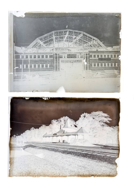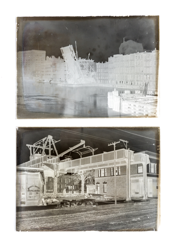 A collection of glass plate negatives featuring different Chicago engineering projects, including the construction of the elevated trains and depot station. Chicago, c. 1890-1900.