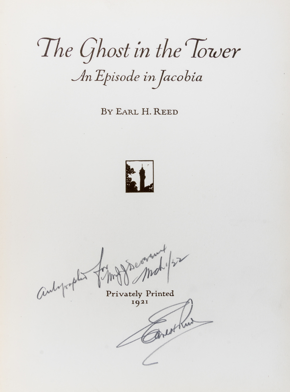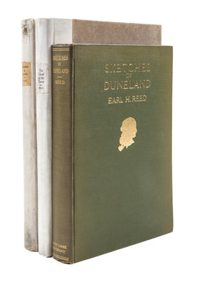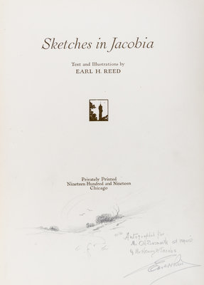 A group of limited edition works by Earl H. Reed. Chicago: Caxton Club, various dates.Ghost in the Tower. Chicago, 1921. Signed and inscribed; Sketches in Jacobia. Chicago, 1919. With original sketch; Sketches in Duneland. New York, 1918. Signed and inscribed, with original sketch.