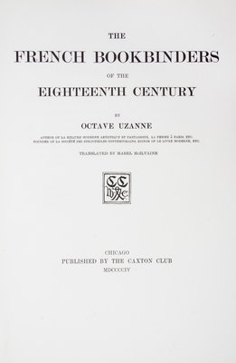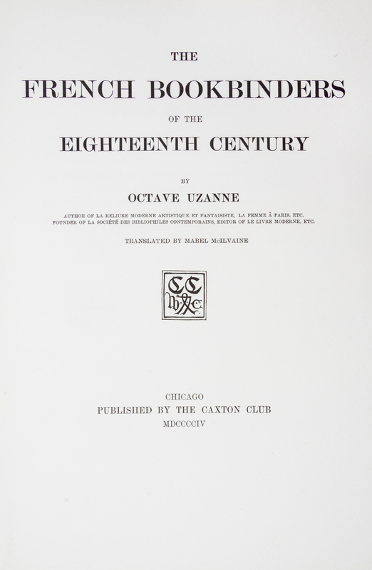 The French Bookbinders of the Eighteenth Century. Chicago: Caxton Club, 1904.Folio, rebound in full black morocco, t.e.g., marbled endpapers. First edition, limited to 252 copies. Contains 20 color plates and other illustrations.