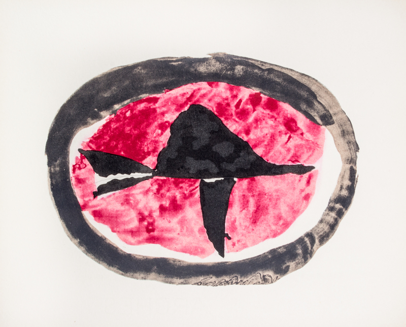 Le solitaire. Paris: XXe Siecle; London: Zwemmer, 1959.Oblong 8vo, publisher's illustrated cloth-backed boards, slipcase. Complete with eight color lithographed plates by Braque. Limited edition, number 441 of 900 copies. Light brownspotting to boards; bookseller's sticker to slipcase and front pastedown.