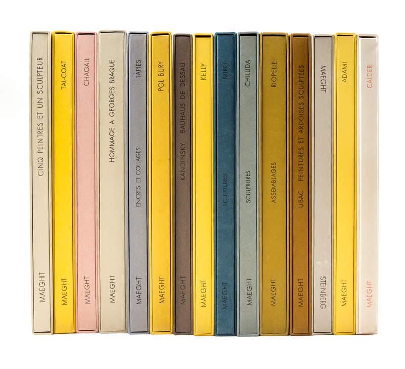 A collection of 15 deluxe issues of this important French art magazine, all folio, loose as issued in original pictorial folders, board slipcases and chemise with pastedown printed labels. Limited editions, most one of 150, all but two signed, with original lithographs as called for. Paris: Maeght editeur, 1964-1977. All near fine, with some light off-setting (spotting to title page Kandinsky)