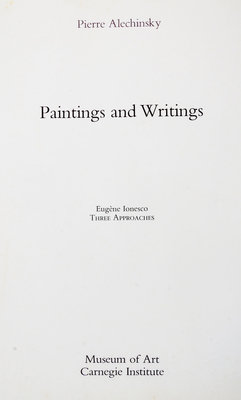 Paintings and Writings. Paris: Yves Riviere-Arts, n.d.4to, publisher's pictorial stiff paper wrappers. Illustrated with numerous reproduction plates throughout. With original limited edition color lithograph signed by Alechinsky laid in to front. Soiling to wrappers; toning to edges of original plate; hinges starting.