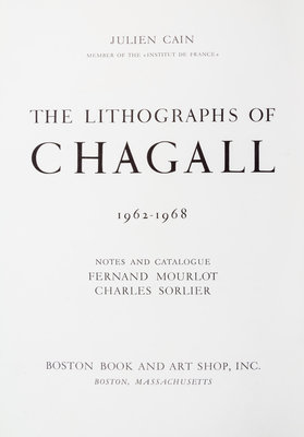 The Lithographs of Chagall. Volume III: 1962-1968; Volume IV: 1969-1973. Boston: Boston Book and Arts Shop, 1969; New York: Crown Publishers, 1974. 2 vols. 4to, publisher's cloth, dust jackets, mylar wraps, board slipcases. Each with original lithograph frontispiece.