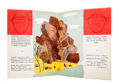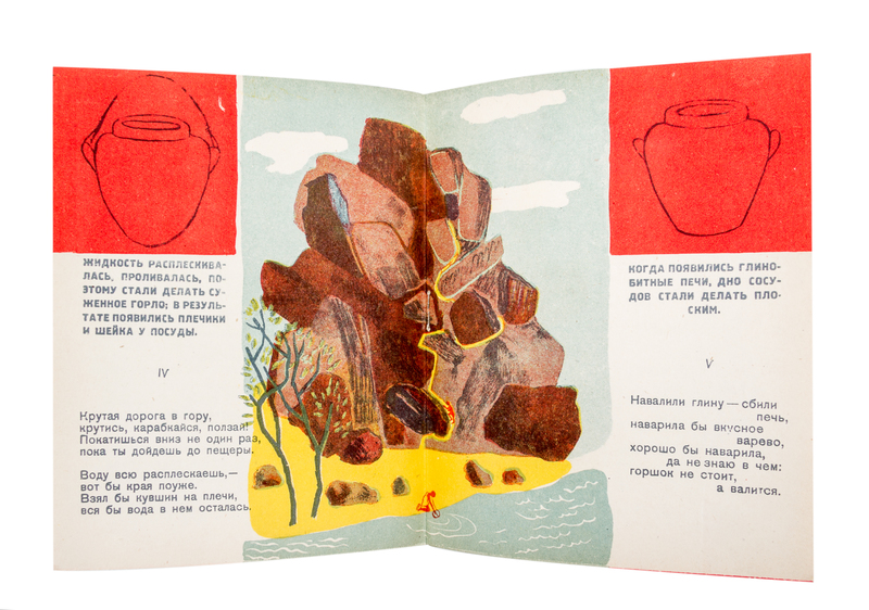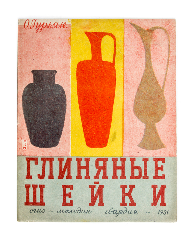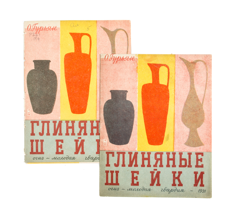 Glinyanyya sheiki. (2 copies) OGIZ [Moscow]: Molodaia gvardiia, 1931.8vo, contents stapled in original color lithograph wraps. Featuring the process of making pottery from clay to final form.