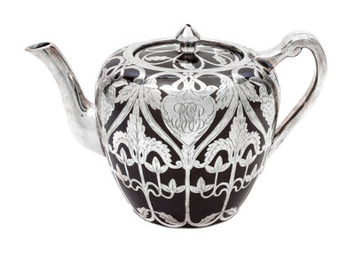 A Porcelain Silver Overlay Teapot