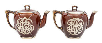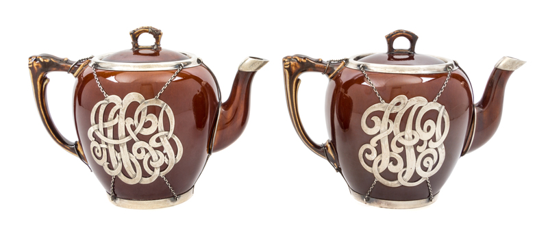 one mounted with a cartouche dated January 1905 and a monogram, the other mounted with a vacant cartouche and a monogram, both stamped STERLING and the second retailed by Galt & Bro., Washington, D.C.