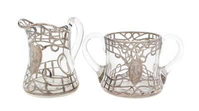 A Silver Overlay Glass Creamer and Sugar Set