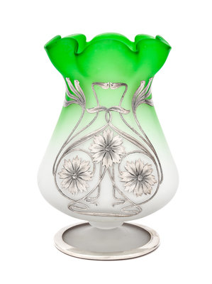 An Art Nouveau Silver Overlay Frosted Glass Vase
