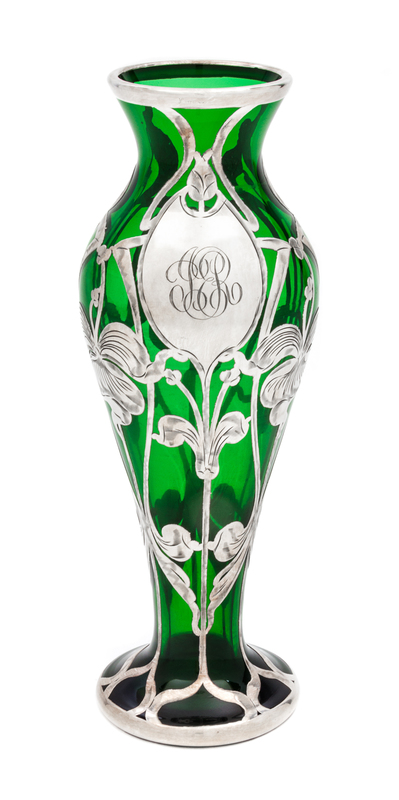 of baluster form, having foliate scroll overlay centered with a monogrammed cartouche, marked for La Pierre.