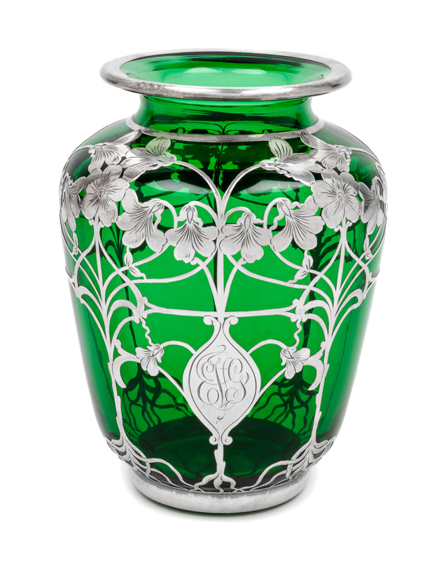 of ovoid form, the overlay depicting flowering plants extending to roots, stamped STERLING D300.