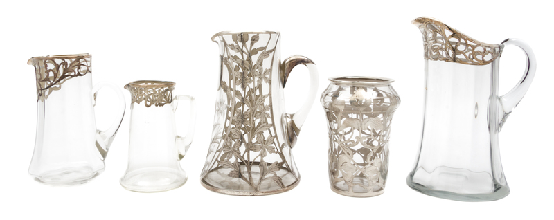 A Group of Five Silver Overlay Glass Table Articles