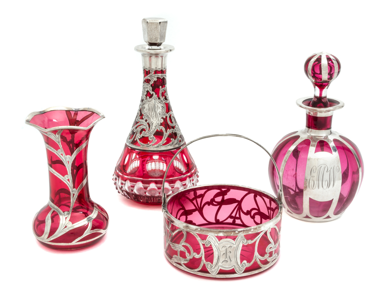 A Group of Four Silver Overlay Glass Articles