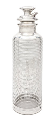 of cylindrical form, having linear inlay centered with an equestrian scene, stamped STERLING.