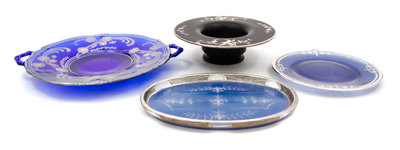 A Group of Four Silver Overlay Glass Table Articles