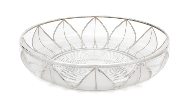 A Silver Overlay Frosted Glass Bowl