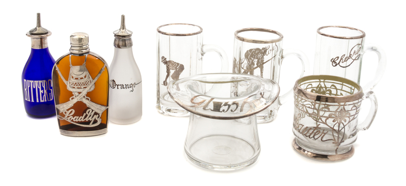 A Group of Eight Silver Overlay Glass Articles