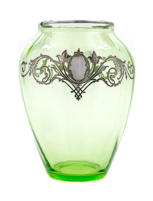 of ovoid form, having floral and foliate scroll overlay, each side centered by a vacant oval cartouche.