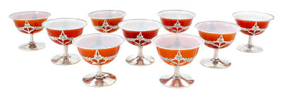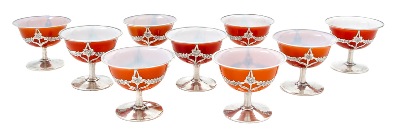 A Collection of Nine Silver Overlay Glass Coupes