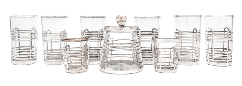 A Group of Nine Silver Overlay Glass Articles