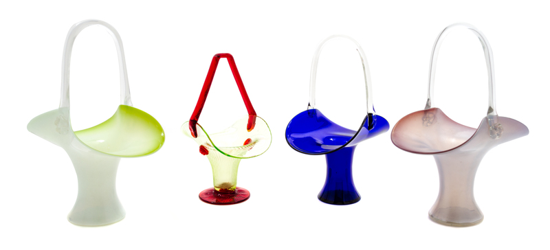 each of typical form, the cobalt glass example having an acid etched Czechoslovakia mark to the underside.
