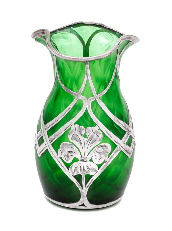 An Iridescent Silver Overlay Glass Vase, likely Austrian
