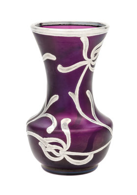 A Silver Overlay Glass Vase, manner of Loetz