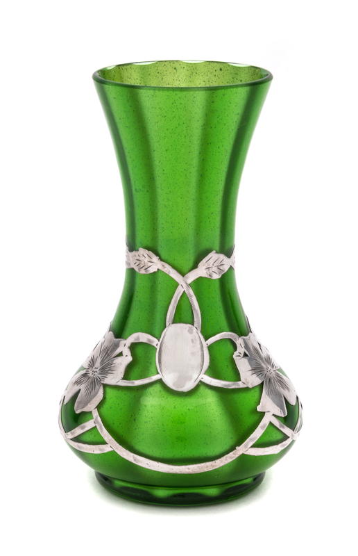 A Loetz Silver Overlay Grun Metallin Glass Vase