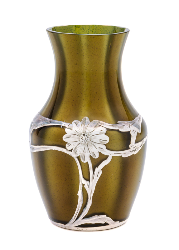 A Loetz Silver Overlay Metallin Glass Vase