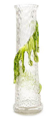 of tapering form with a flared mouth and a textured surface, having applied drip decoration.