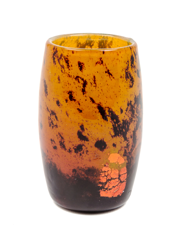of barrel form with foil decoration, signed Daum Nancy with the Cross of Lorraine.