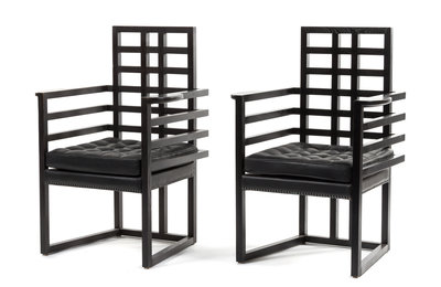 A Matched Pair of Josef Hoffmann for Wittmann Ebonized Wood Arm Chairs