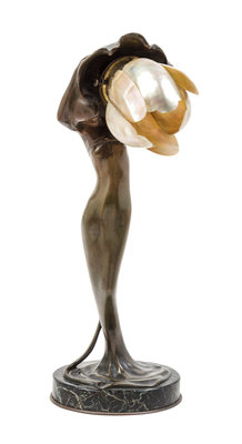 An Art Nouveau Bronze and Shell Figural Lamp, Gyula Betlen (1879-1962)