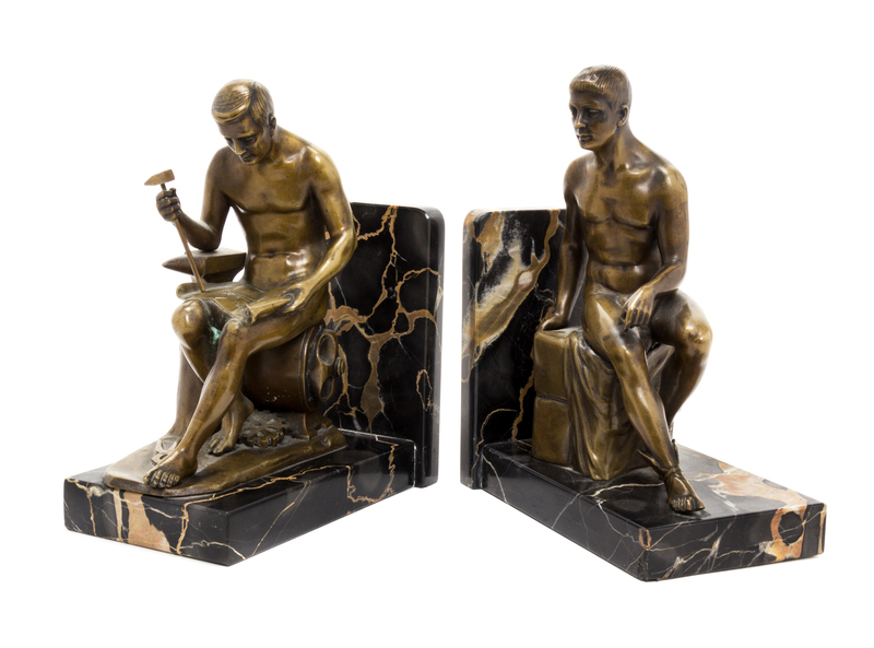 each in the form of a seated man, one signed Fabor and Schrimpf.