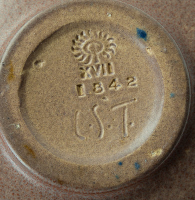 of low footed form, the rim decorated with geometric border, bearing standard marks and numbered 1842.