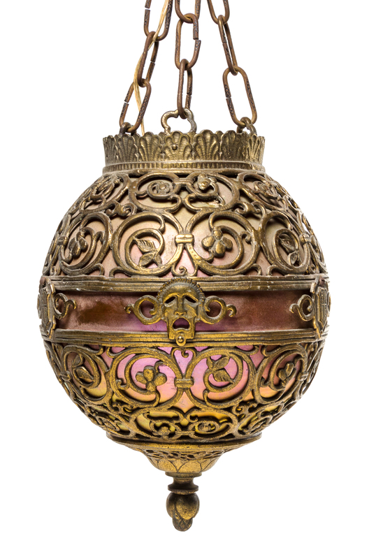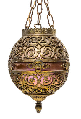 An Oscar Bach Gilt Bronze and Steuben Aurene Glass Fixture