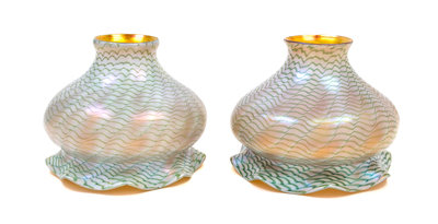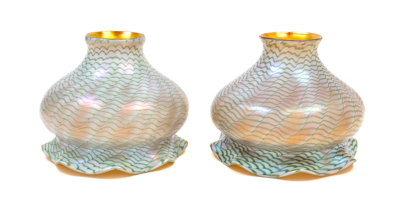 A Pair of Quezal Iridescent Glass Shades