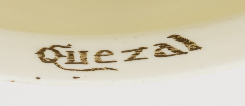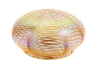 of domed form with pulled linear decoration, signed to interior of fitter rim.