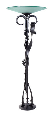 comprised of painted steel with a frosted bowl shade, stamped with date 1999 at base.