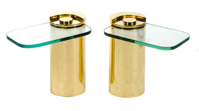 each having a cylindrical brass base with a cantilevered glass top, unmarked.